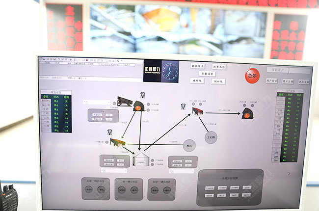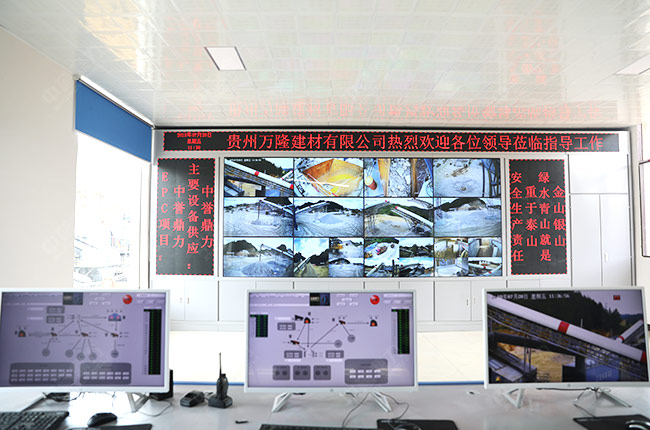 貴州省萬隆建材生產(chǎn)線砂石生產(chǎn)智能管理系統(tǒng)的總控制室,各設(shè)備的生產(chǎn)畫面掌控
