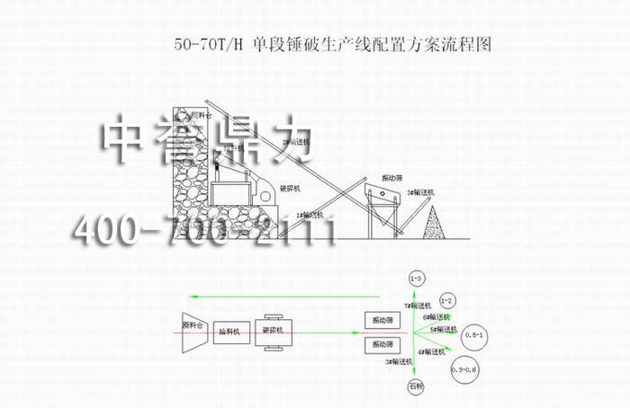 PC0706錘式破碎機(jī)時(shí)產(chǎn)50噸石料生產(chǎn)線配置方案